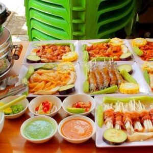 – Cách ăn thịt nướng ngon nhất vẫn là cuộn thịt, dưa leo, rau với xà lách tươi sống. Quết kèm nước chấm muối xanh cay cay, chua cua ngọt ngọt. Quyện chung với thịt…